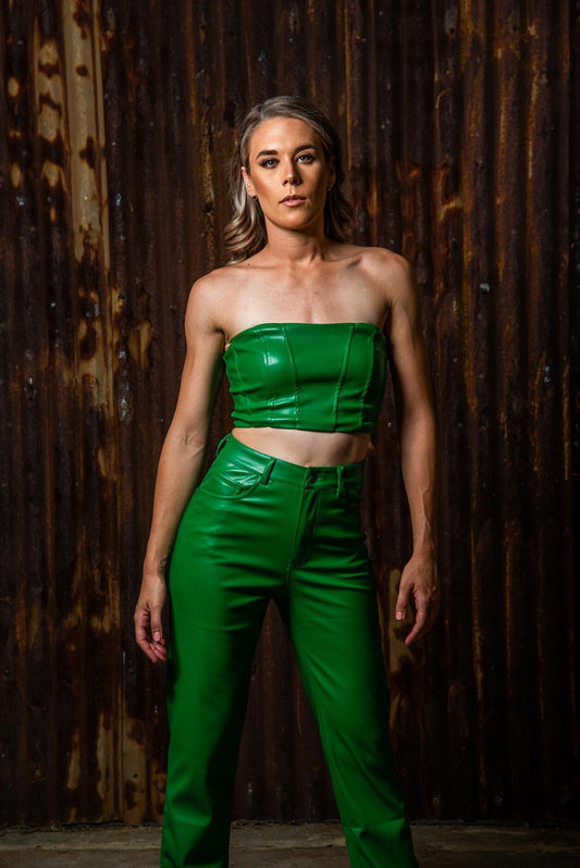 Zipper Flying Ladies Vest and Solid Leather Pants Set.
